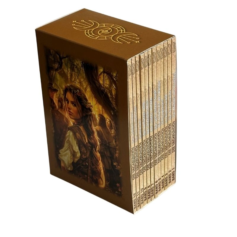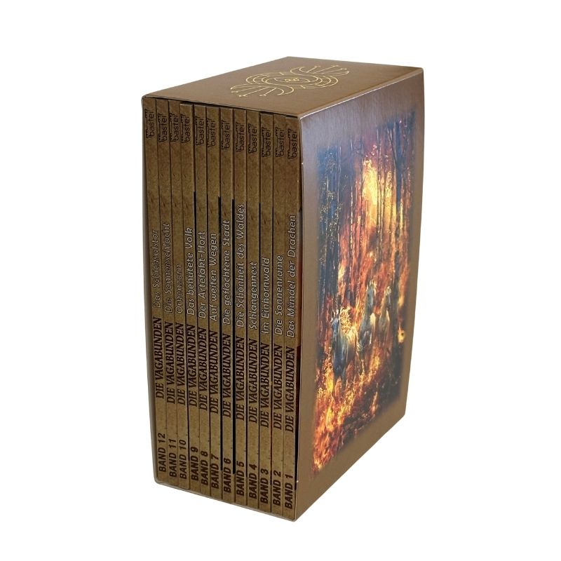 Begeben Sie sich auf eine abenteuerliche Reise voller Magie, Geheimnisse und Intrigen! Der edle Sammelschuber enthält alle 12 Bände der ersten Staffel von Die Vagabunden von Bestsellerautor Robert Corvus für 54,95 EUR inkl. Versandkosten (in Deutschland).